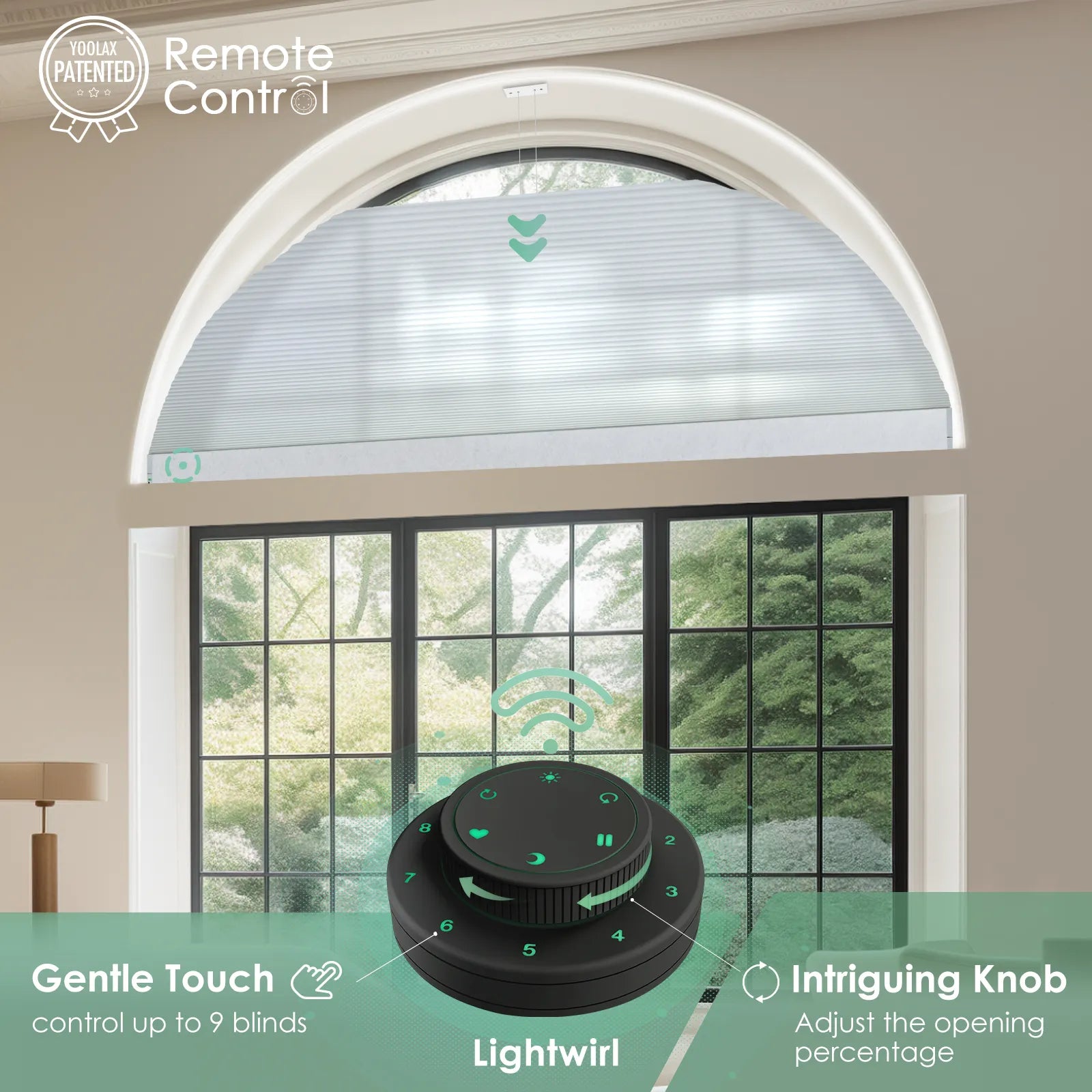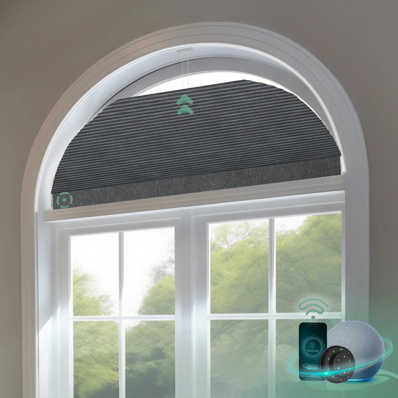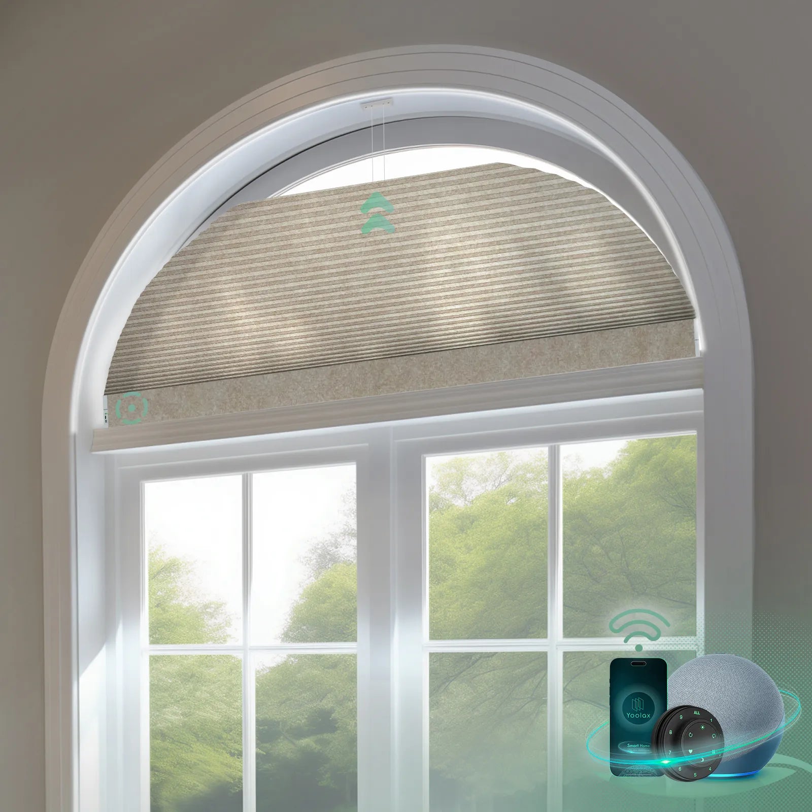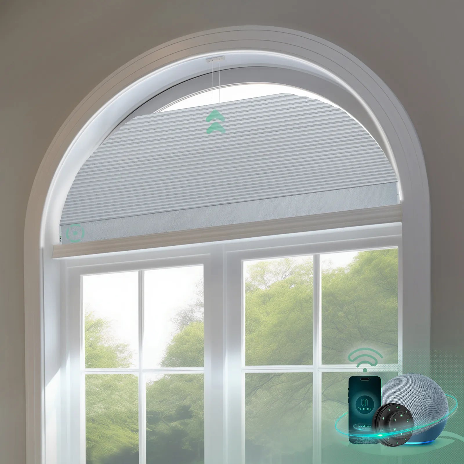 • Smart Control: Effortlessly manage arched cellular blinds with voice, remote or app for ultimate convenience.