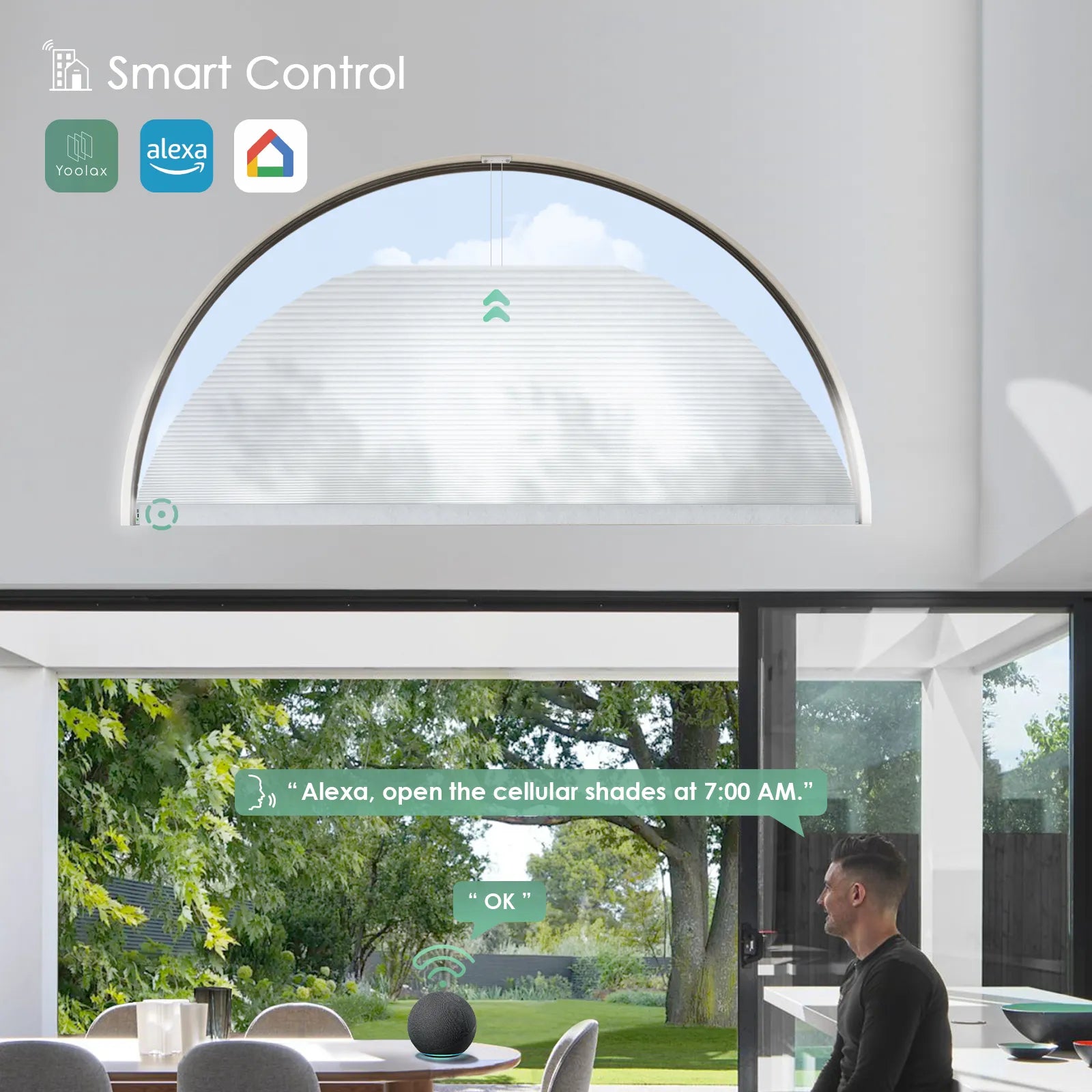 • Smart Compatibility: With Zigbee motor, arched cellular shades are compatible with 7 Alexa devices (such as Echo Plus, Echo Show, etc.), allowing for easy voice control.