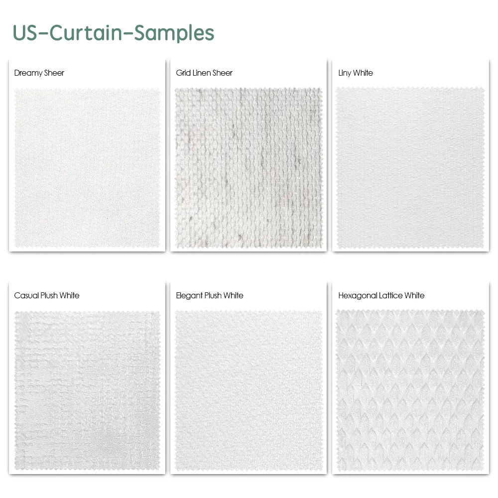 • Light Series–Dreamy Sheer/Grid linen Sheer/Elegant Plush White/HexagonalLattice Whithe/Plush Linen Beige/Crystal Champagne/Liny White/Casual Plush White/Jaquard Linen Beige/Coarse Linen Beige/Patern Champagne/Snowflake Ivory Champagne/Delicate Tranquil Greige