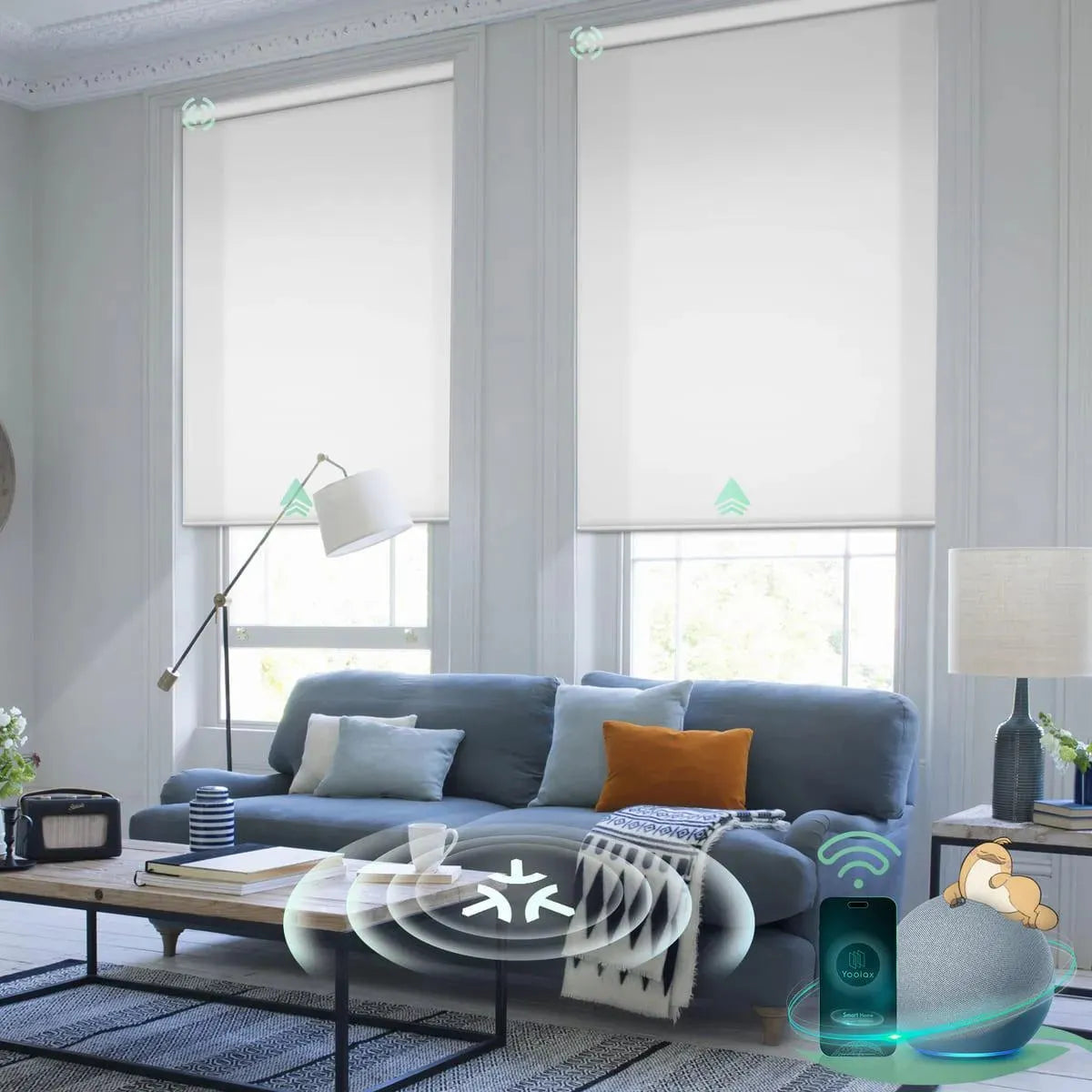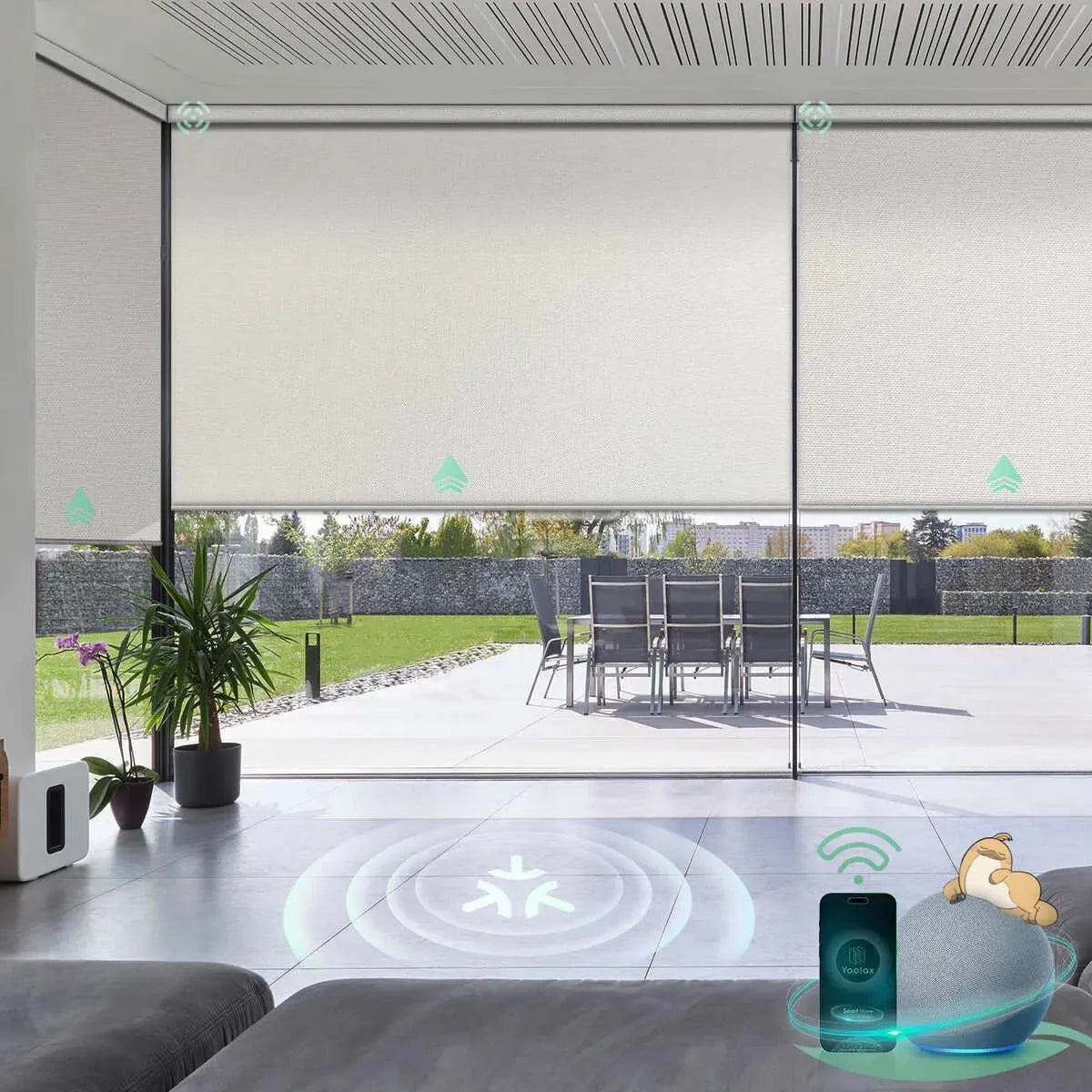 The motorized system supports optional solar panel charging, reducing energy consumption and minimizing the need for frequent recharging. Seamlessly integrated with Alexa, Google Assistant, Homekit and smart home routines, these solar shades deliver hands-free automation for everyday comfort.