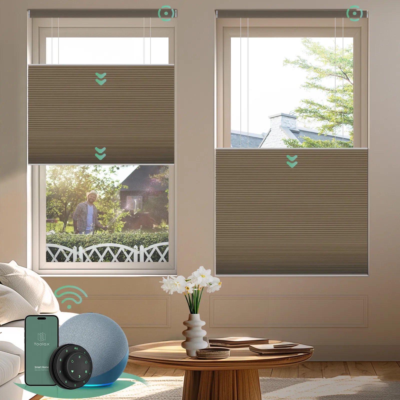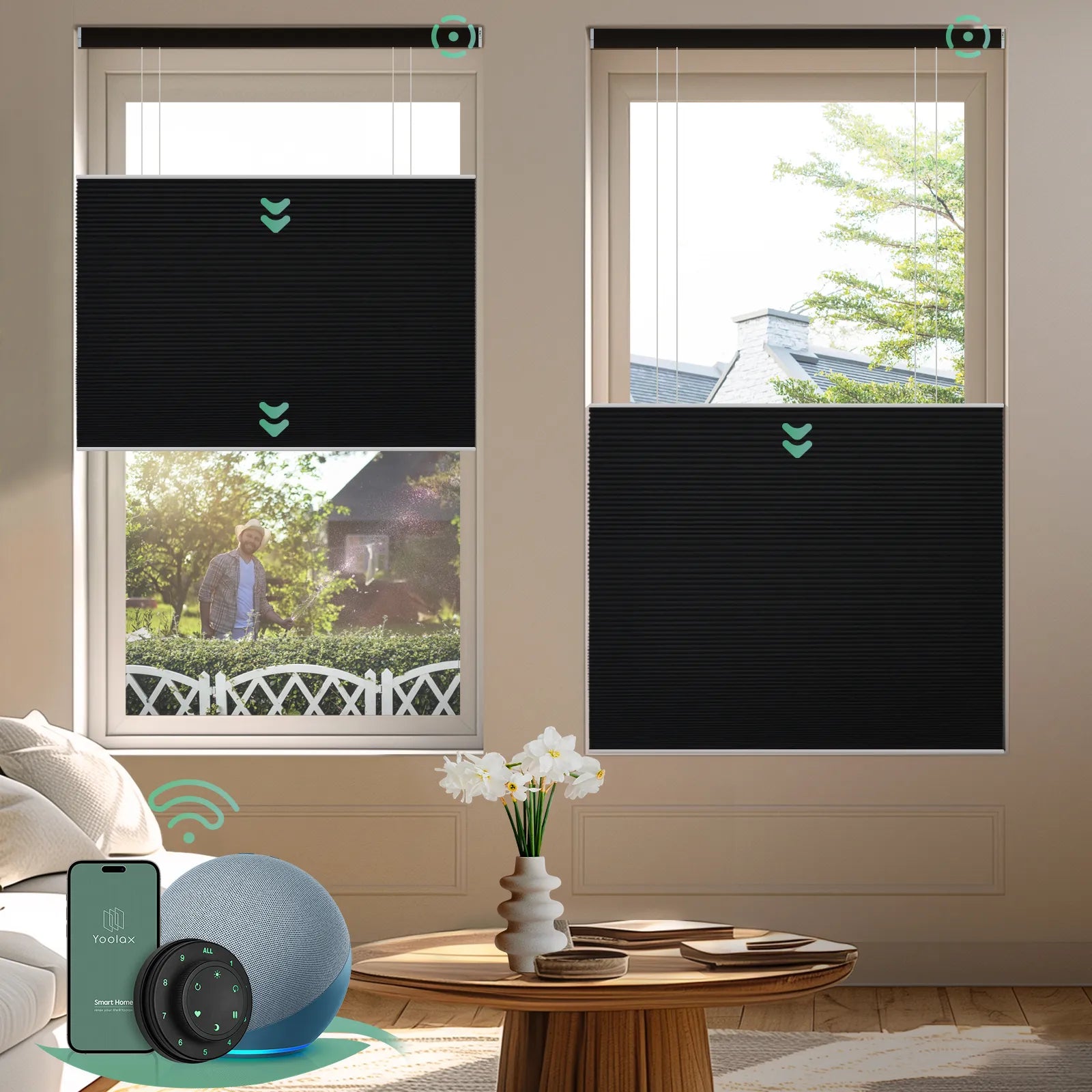 • Smart Control: Effortlessly manage honeycomb blinds with voice, remote or app for ultimate convenience.