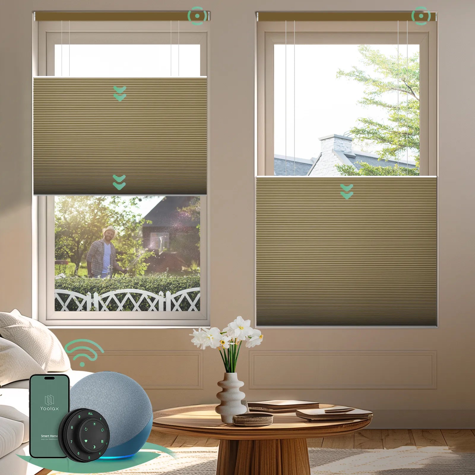 • Smart Compatibility: With Zigbee motors, top down bottom up cellular blinds are compatible with 7 Alexa devices (such as Echo Plus, Echo Show, etc.), allowing for easy voice control.